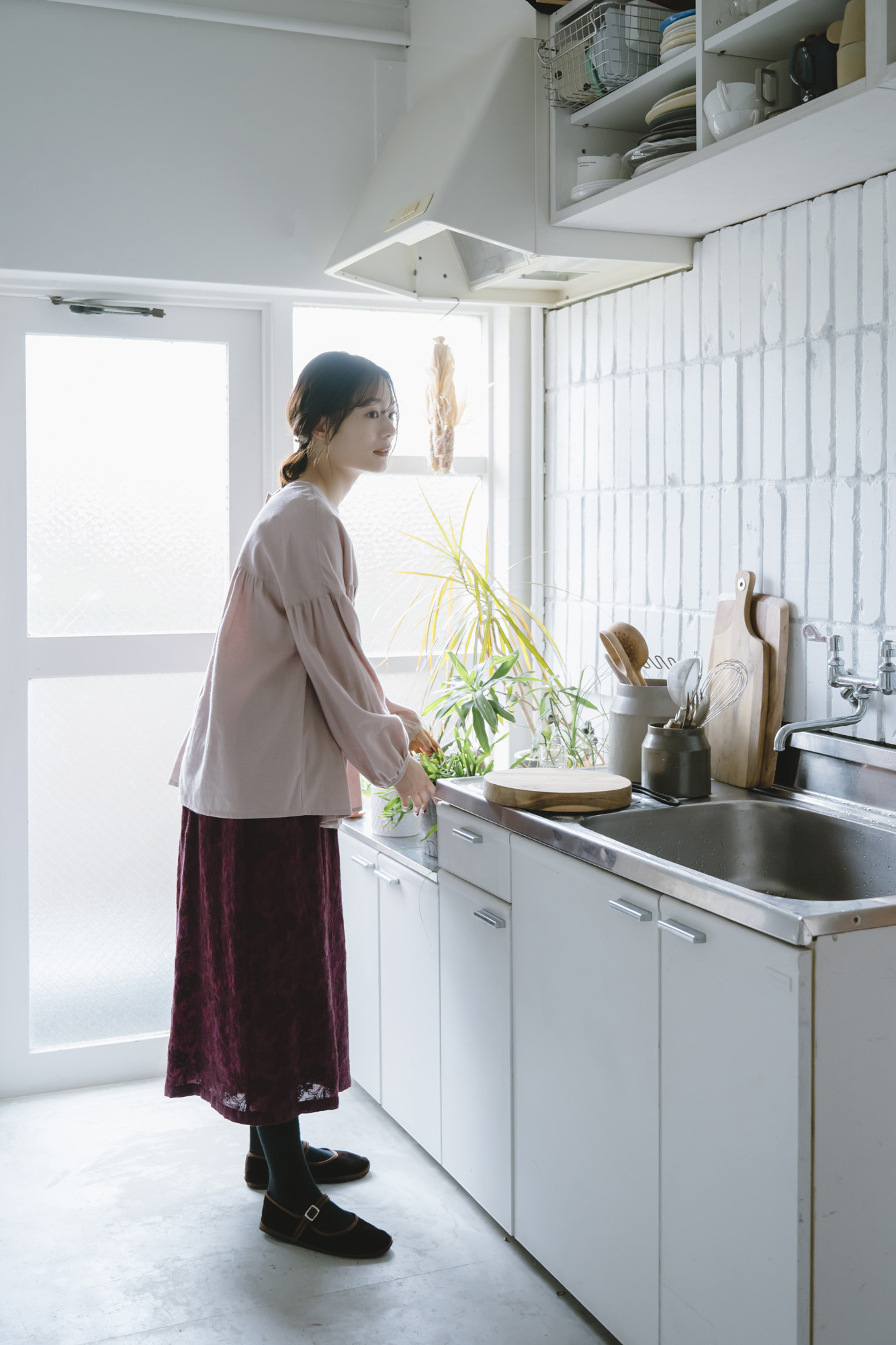 オリジナルツイルヨークギャザーブラウス ¥13200 INDIAボイル刺繡スカート ¥19800