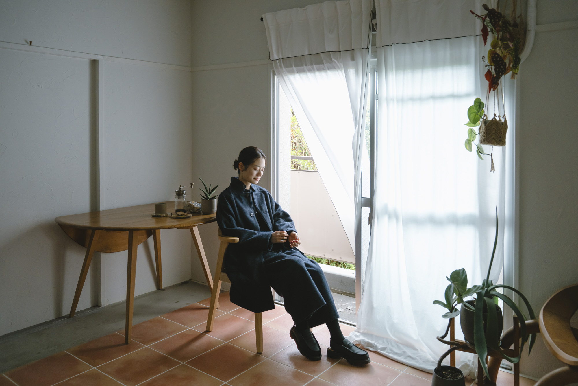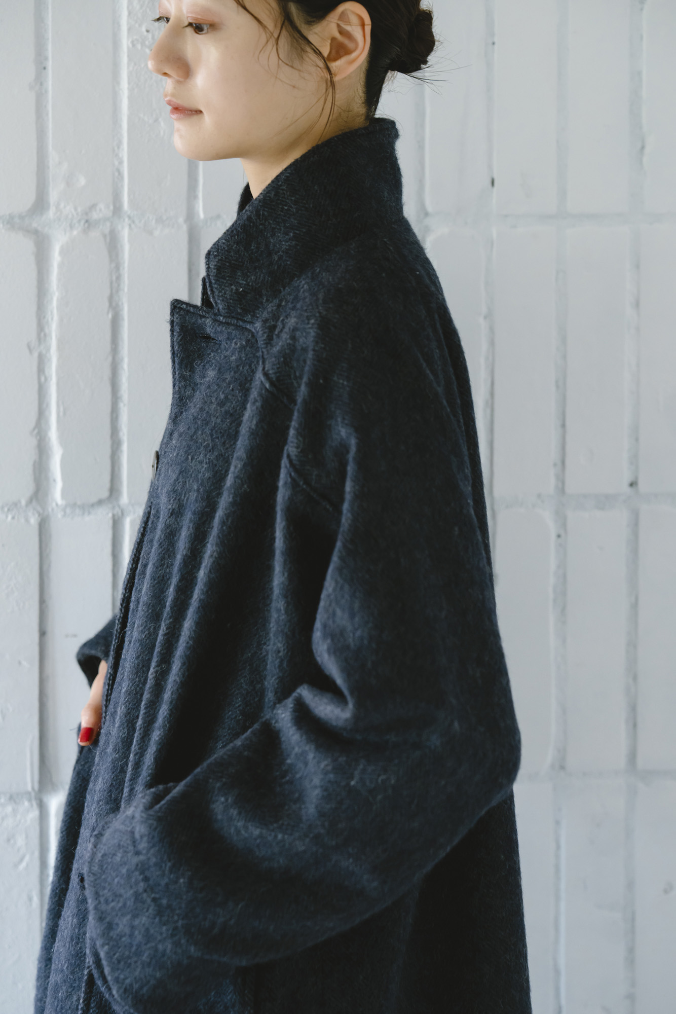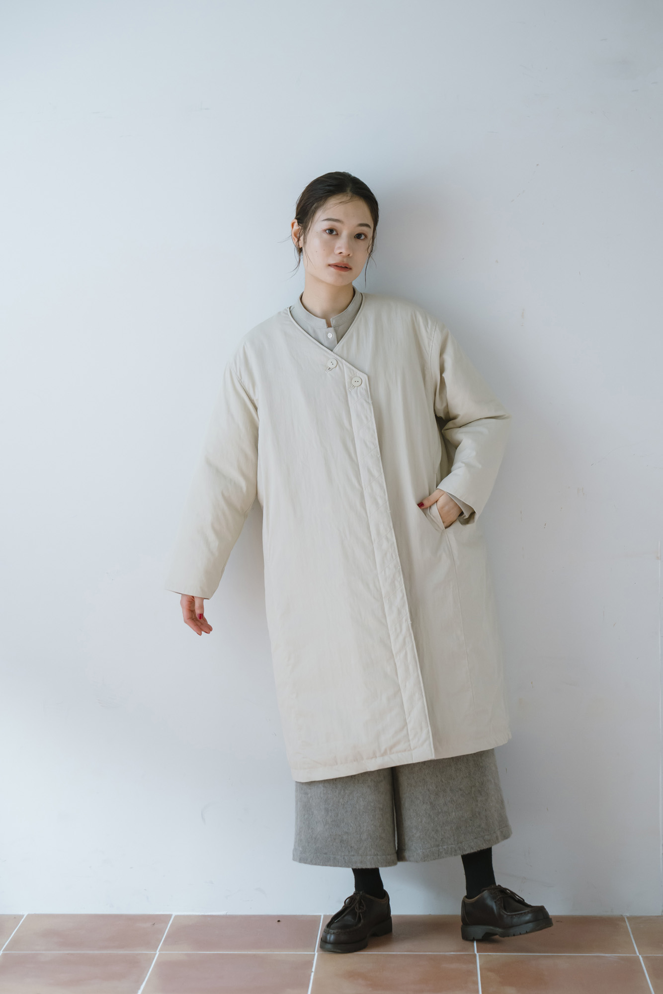 CORDUR×OXFORDシャツ ¥16500 エコウールデザインスタンドコート ¥36300 エコウール裏付き9分丈パンツ ¥22000